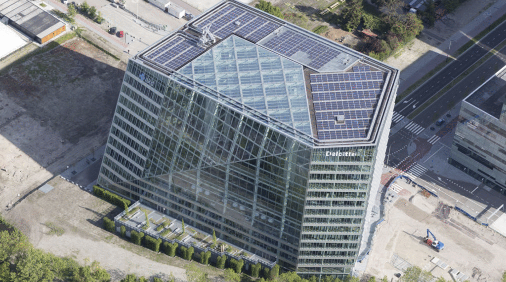 - Bashkëpunimi i energjisë së rinovueshme me ndërtesat e mençura: Një shembull i shkëlqyer është The Edge, një ndërtesë në Amsterdam që është e njohur si ndërtesa më e “mençur” në botë. Ajo përdor sisteme fotovoltaike për të gjeneruar energji, dhe gjithashtu përdor teknologji për të menaxhuar energjinë, ndriçimin dhe klimatizimin automatikisht, duke reduktuar ndjeshëm konsumimin e energjisë.